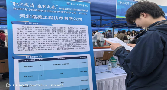 为深化就业观教育实效,引导学生树立理性就业认知、破解求职焦虑,4月14日上午,团委精心组织学生参与“职汇武清 雍有未来” 2026年全国城市联合招聘高校毕业生春季专场(武清站)暨亦通武廊春季校园招聘会,并同步开展武清京津产业新城、交控科技(武清基地)实地参观,将就业观教育深度融入招聘实践、产业考察与企业研学场景,让学生在沉浸式体验中明晰职业方向、感知产业脉搏。