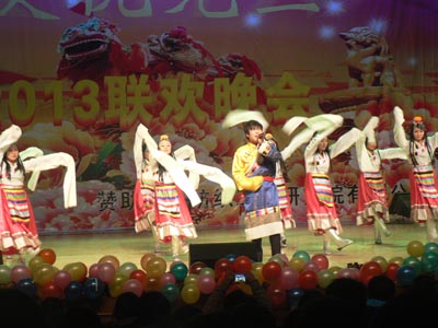 晚会首先由开场舞《反重力》拉开了序幕,现场顿时掀起一片热潮,接下来是由国际交流学院的学生带来的异族舞蹈《印度新娘》和航运工程系的黄贤颖带来的独唱《芦花》,紧接着由经济管理系洛桑尖措等带来的歌伴舞《青春踢踏》给观众带来了又一次视觉冲击。